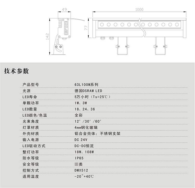 大功率洗墻燈|63L100M系列