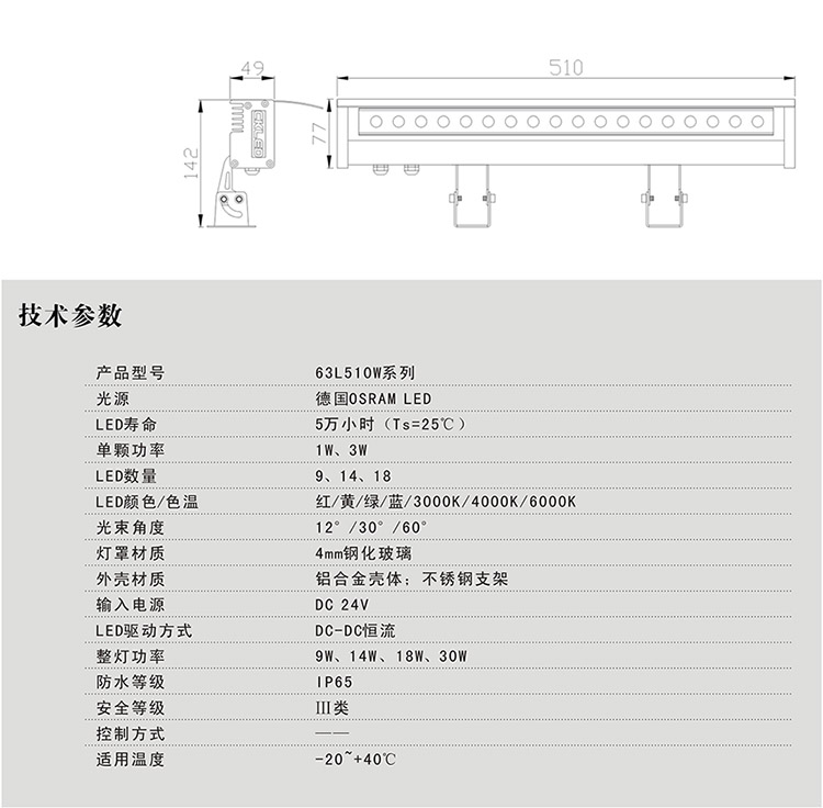 大功率洗墻燈|63L510W系列